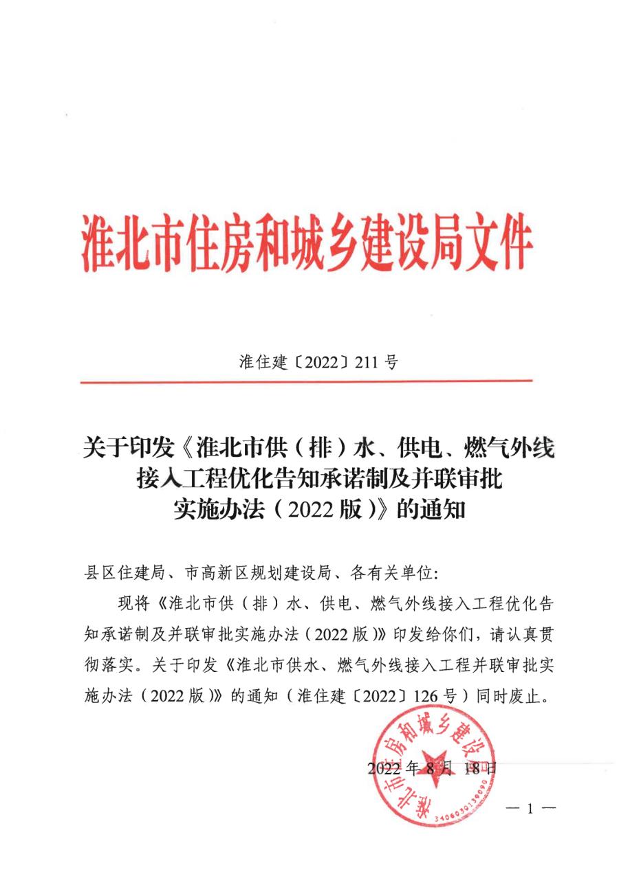 淮北市供(排)水、供電、燃?xì)馔饩€接入工程優(yōu)化告知承諾制及并聯(lián)審批實(shí)施辦法(2022版)