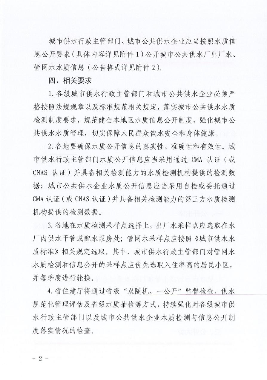 關(guān)于進(jìn)一步規(guī)范城市公共供水水質(zhì)信息公開工作的通知