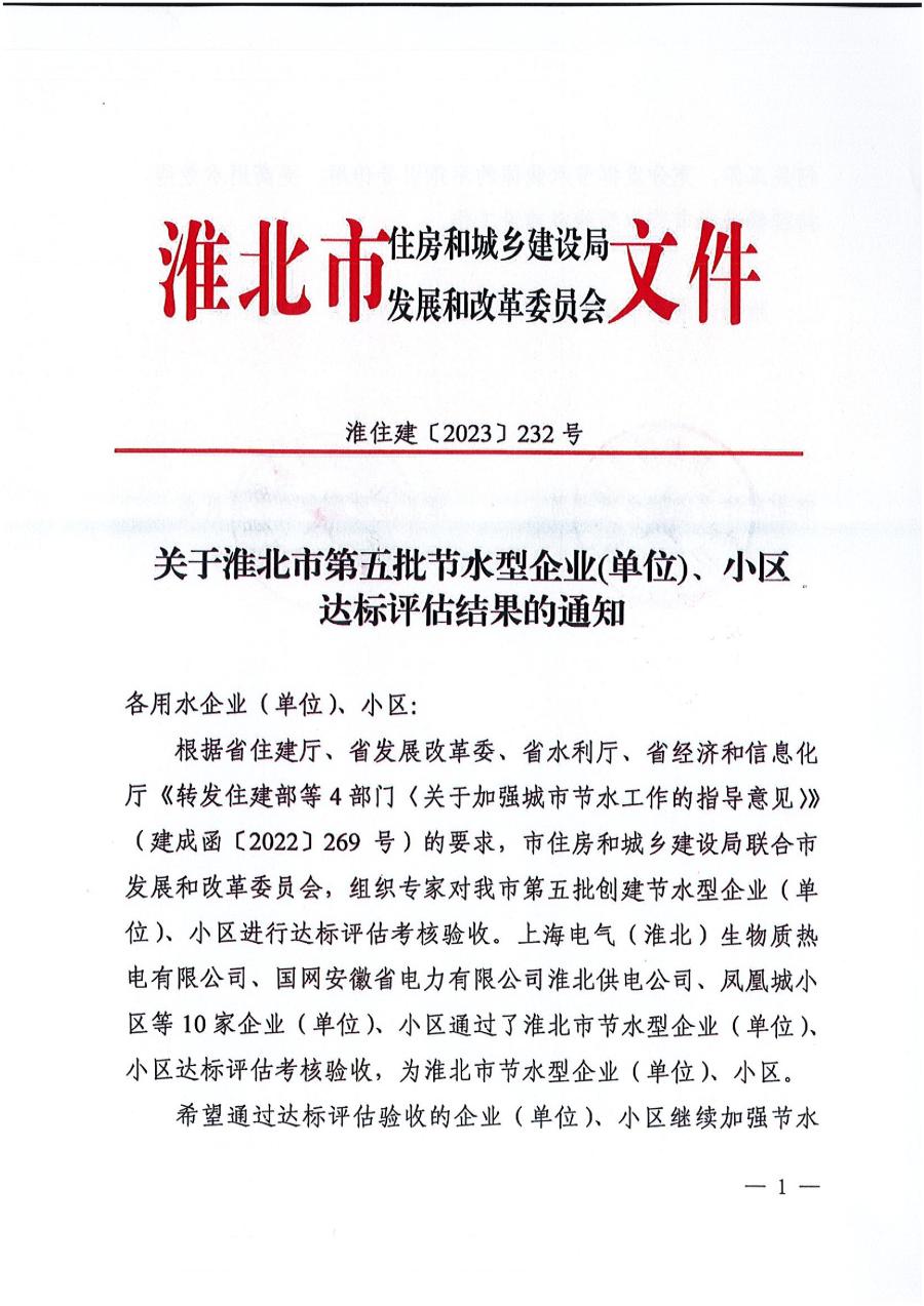 淮北市供水有限責(zé)任公司被評(píng)為淮北市節(jié)水型企業(yè)(單位)
