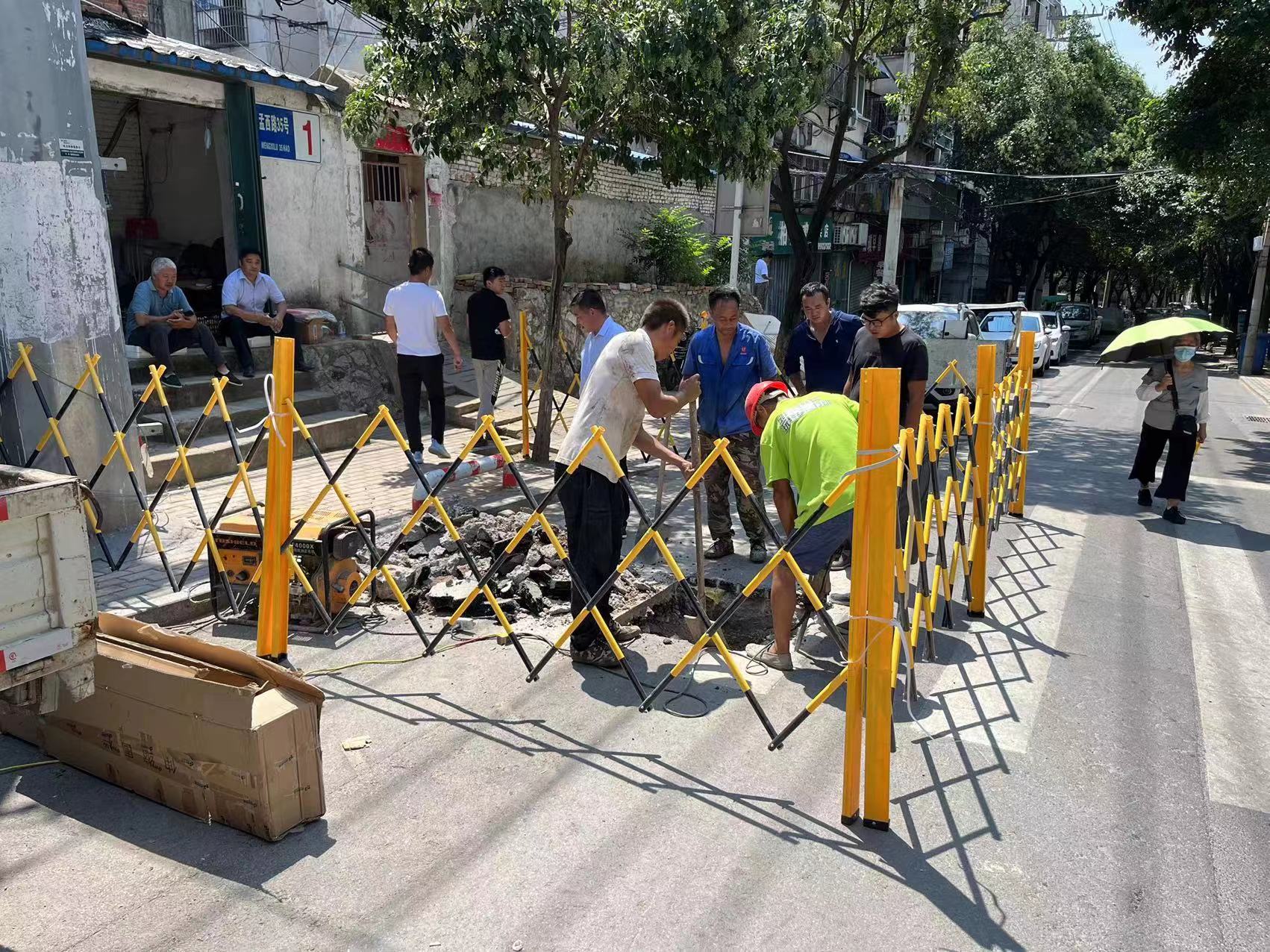 管網(wǎng)部立即對漏水點展開了搶修工作,漏水點在環(huán)山西路中間位置。為了過往車輛和施工人員的安全,立即匯報至交警部門,得到批準后對環(huán)山西路進行了封路。搶修工人頂著高溫天氣,經(jīng)過8個小時的奮戰(zhàn),終于將漏水管道修復完成,確保了居民正常用水。晚上21時,清運多余的余土和開挖溝槽的回填,恢復環(huán)孟西路正常通行。8月18日凌晨1時,瀝清路面恢復完畢,開始清掃、沖刷開挖處路面的污垢。直至凌晨3時,搶修工作全部完成。