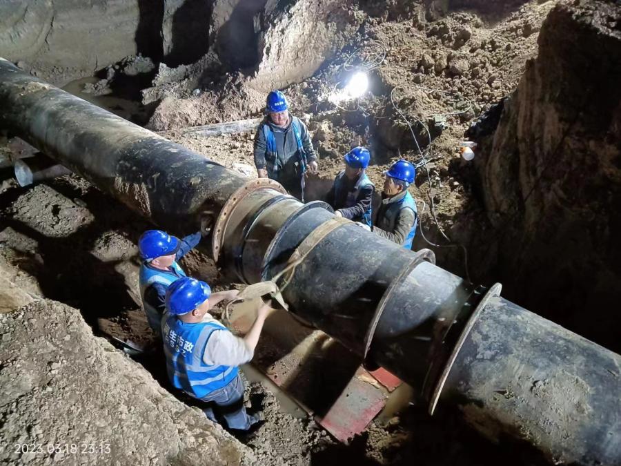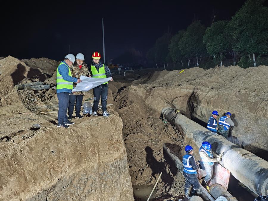 因施工影響導(dǎo)致管網(wǎng)沿線區(qū)域短暫停水,市水務(wù)集團前期通過媒體、網(wǎng)站、微博等平臺進行宣傳告知。企業(yè)用戶逐一上門進行通知,優(yōu)化施工方案,施工物資提前調(diào)配,錯峰施工,把因停水給企業(yè)生產(chǎn)和居民用水帶來的影響降至最小。為保證管網(wǎng)遷改的順利進行,水務(wù)集團供水公司組建專業(yè)力量針對每個遷改點制訂了詳細的工作預(yù)案、專項施工方案和應(yīng)急預(yù)案,明確涉及遷改的相關(guān)工作要求,提升工作效率,確保工程質(zhì)量和施工安全。公司管網(wǎng)管理部多次確認管線位置走向并開展技術(shù)交底。對于預(yù)埋管道交叉的部分采用人工探挖,對開挖到的第三方管線采取有效的保護措施,待管線探明后采用機械開挖,確保施工現(xiàn)場安全有序。施工中,加強與業(yè)主和監(jiān)理就突發(fā)狀況的溝通和協(xié)調(diào),加強施工現(xiàn)場工程質(zhì)量和安全監(jiān)督,完善過程資料,優(yōu)化細化遷改工序。做好停水計劃,將停水時間縮減到最短,停水范圍優(yōu)化到最小。項目遷改DN800管道口徑,總長度110米。公司投入3施工隊,40余人,采用分段式施工,其中白天進行開挖、鋪設(shè)、遷移等工序。為了把因停水給居民帶來的影響降至最小,管網(wǎng)碰頭、合攏等采取夜間停水施工。供水管網(wǎng)的讓道不僅保障了淮宿蚌城際鐵路(淮北段)建設(shè)的順利推進,而且改遷后的供水管線質(zhì)量、沿線水質(zhì)、水壓安全穩(wěn)定。