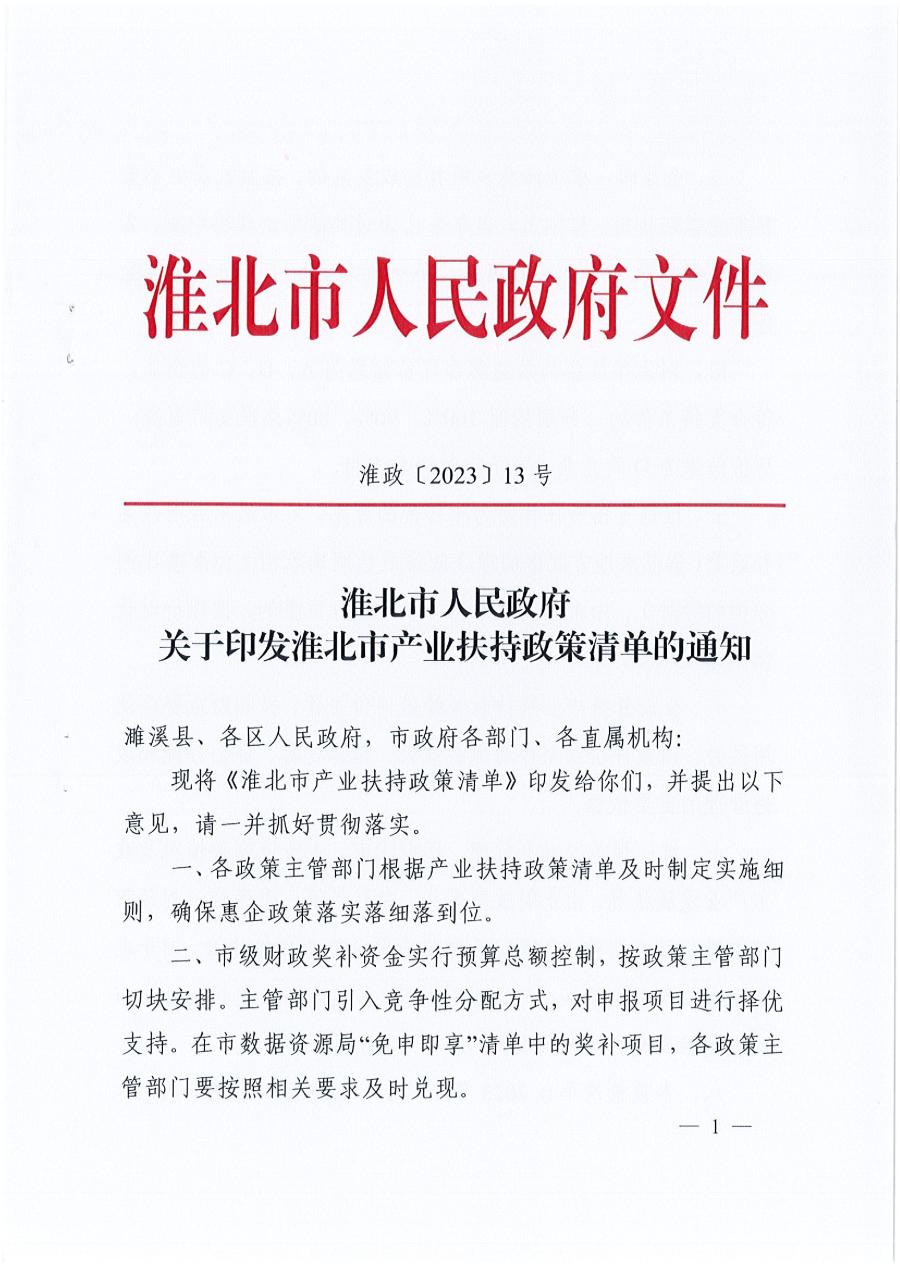 淮北市人民政府關(guān)于印發(fā)淮北市產(chǎn)業(yè)扶持政策清單的通知 淮政【2023】13號(hào)
