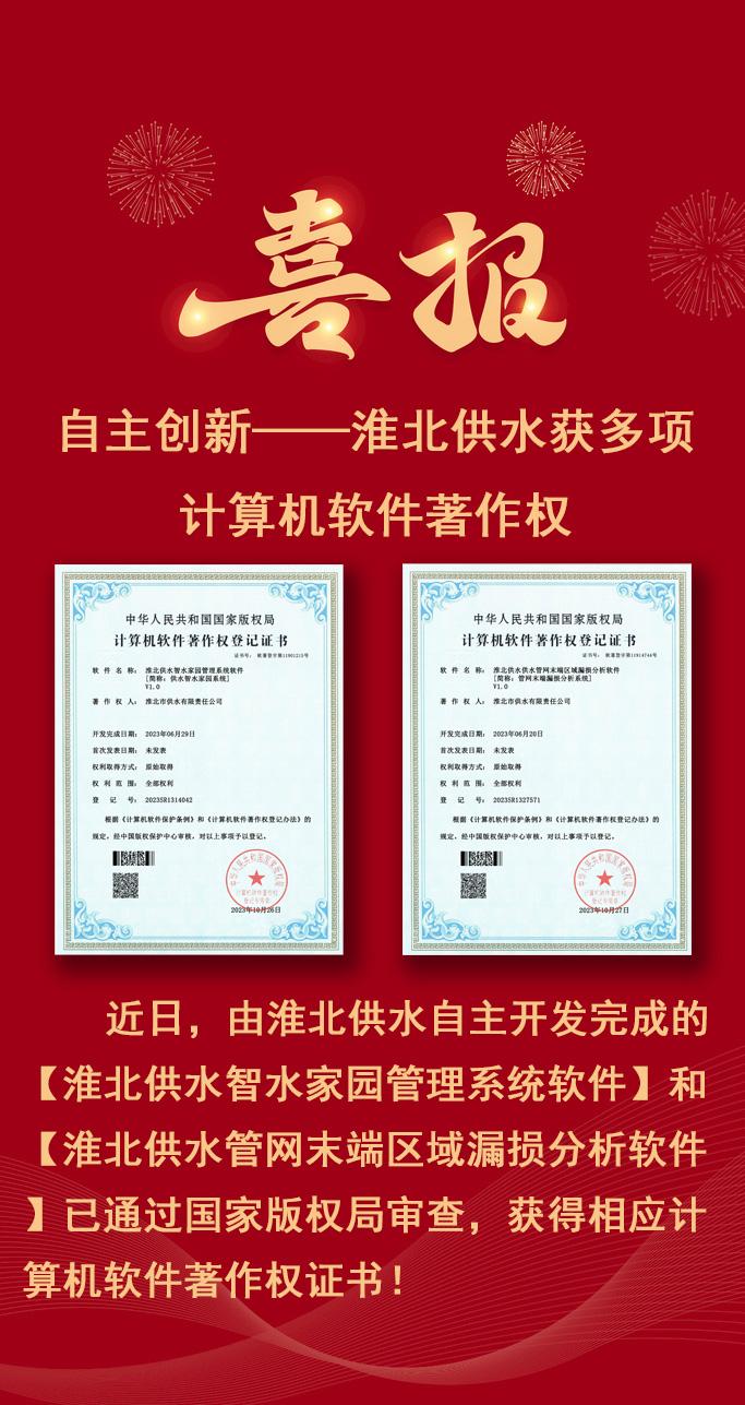 自主創(chuàng)新——淮北供水獲多項計算機軟件著作權(quán)