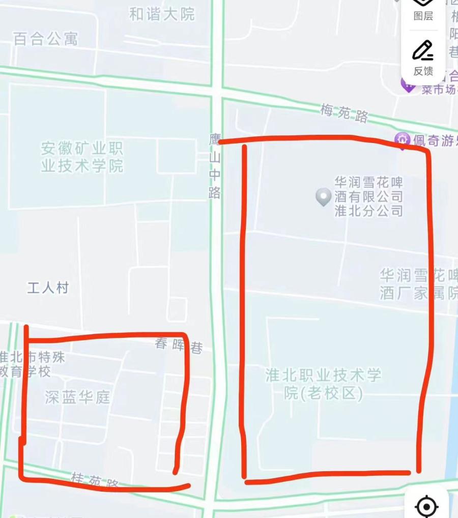 計(jì)劃影響范圍:影響深藍(lán)華庭,淮北市職業(yè)技術(shù)學(xué)院(老校區(qū)),雪花啤酒廠